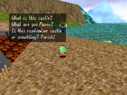 The options are vanilla, black, crazy, and natural. Vanilla is identical to vanilla Super Mario 64; black has large flat-topped turrets made of very dark bricks. Crazy uses blue, orange and white bricks with a pebbley roof, and natural has trees on the top of each turret.