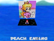 This ending is achieved by choosing the parts that are identical to Peach's Castle. After doing so, Peach will suddenly appear next to Mario and give him a kiss, before he is warped away to the Peach Ending room moments later.
