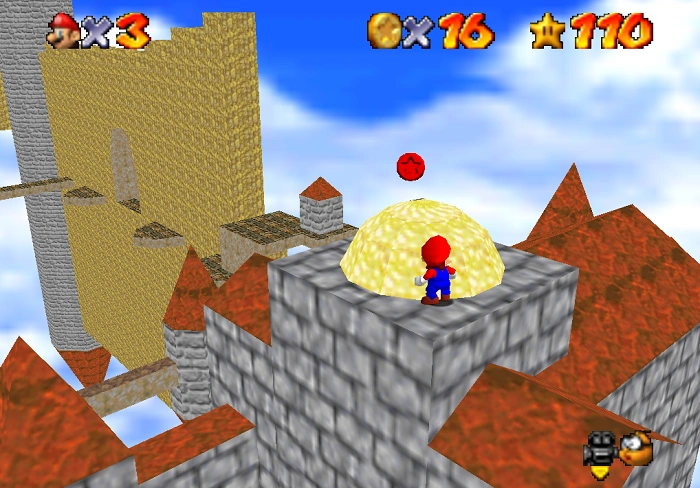 Luminium-Sphere is the 14th main level in Super Mario 74 and requires 85 stars to access. Just like the level before it, it is located in one of the star doors atop the temple in Overworld 3.