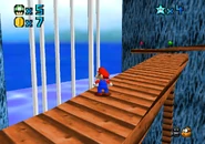 Head into the cannon village, and over to the lower of the two cannons. Instead of entering it, follow the discreet path leading down the side of the cliff behind the fence. It leads to a small platforming area with a Star. Traverse it slowly, as the ledges and platforms to stand on are all rather small, and Mario bouncing off of a wall wrong could easily knock him off of the course.
