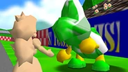 Emeraldgreen Koopa requires the player to race the character with the same name, who can be found directly next to the spawn point, to Princess Peach's castle. The player must reach the end before 20,2 seconds.