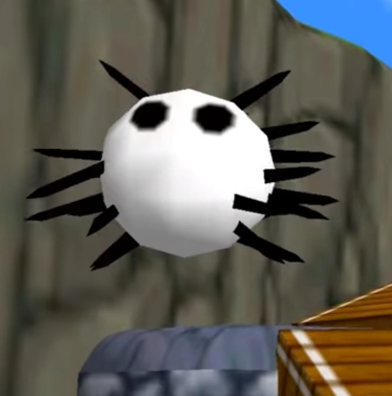 | Fuzzy | Wildlife Valley | Touching these will make Mario spin in circles, and causes everything to become distorted and change colors for a short time, but don't worry, all of the ground is actually still in the exact same spots. This enemy was originated from Super Mario World 2: Yoshi's Island. | |